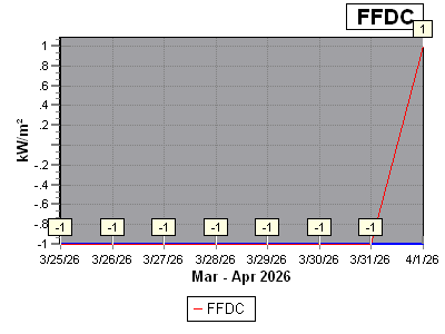 The Forest Fire Danger Code (GFFDC) is based on predicted generated "fire intensity (kw/m²)" in grass type vegetation (dry grass, tussock). This code denotes how difficult it would be to control a fire in this vegetation type should one start. |
